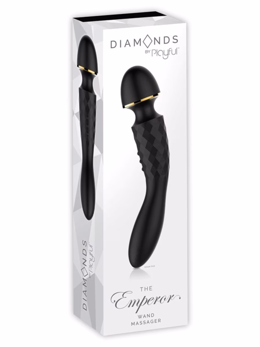 The Diamonds Emperor domed head with flexible neck offers easy intimate play, while the sturdy curved handle makes muscle massaging a breeze.