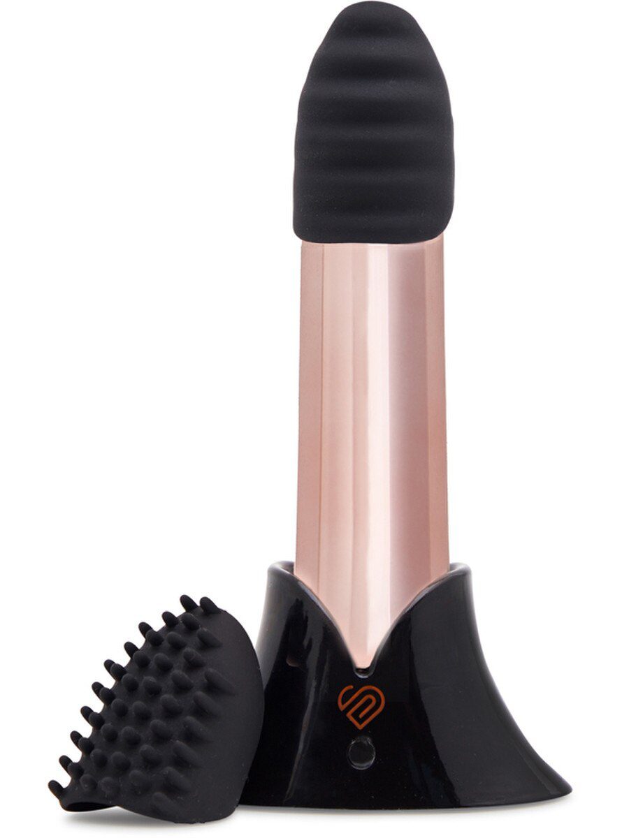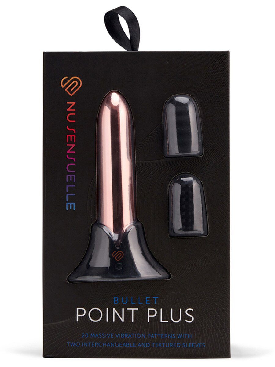 The Point PLUS is the Ultimate Super Bullet! The Point PLUS delivers 30% MORE power that the original Sensuelle Point and features dual controls to navigate the INTENSE 20 Function bullet. Includes two silicone sleeves to further enhance your experience! The Point PLUS Rose Gold has a very highly polished metallic finish. It is beautiful to touch, but is also is mind-blowing intense. It’s not just a bullet, it’s a new breed of bullet that will redefine what a good bullet is. Simply put, it’s THE ULTIMATE SUPER BULLET. Unlike any other bullet you’ve ever touched! Experience the Sensuelle Point PLUS Bullet.