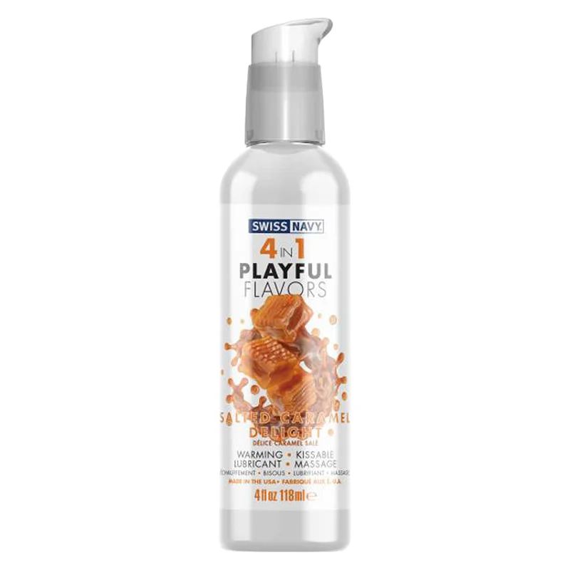 Play together, stay together. Love your love life! Our new Swiss Navy 4 in 1 Playful Flavours taste so decadent they seem too good to be just lubes. 4 in 1 Playful Flavours can be used for unlimited amounts of fun. From a simple massage, oral massage, to extended play as lube we guarantee that you will never run out of fantasies for use